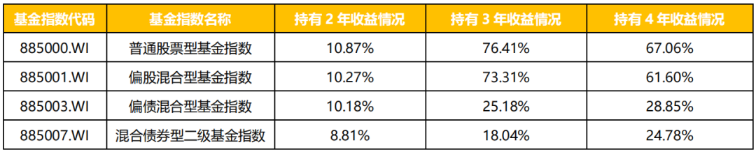 数据来源:Wind,持有2、3、4年的时间区间分别为2018/1/29-2020/1/29、2018/1/29-2021/1/29、2018/1/29-2022/1/29。为方便计算,未考虑手续费。相关指数历史业绩不代表相关类型基金未来业绩表现。