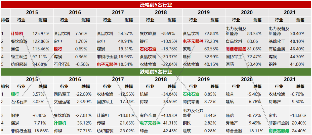 数据来源:Wind,统计时间段2015年至2021年,统计样本为中信一级行业指数。历史业绩不代表未来业绩表现,上述板块不作为行业推荐。