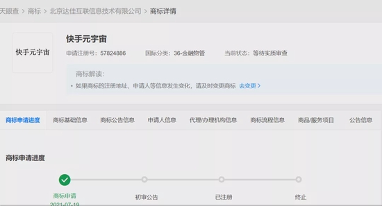 快手一直被市场认为是港股的元宇宙概念股。2021年7月,快手关联公司北京达佳互联信息技术有限公司,申请注册了多个“快手元宇宙”商标。