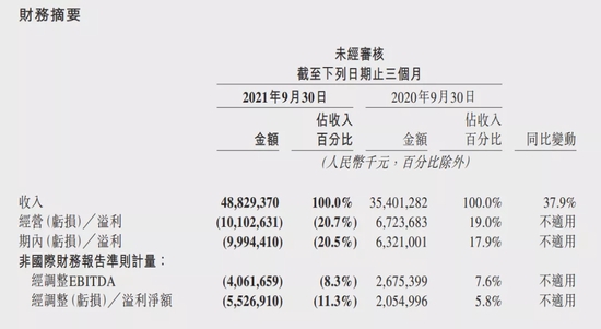 2021年11月26日,美团发布业绩公告称,2021年第三季度实现营收488.29亿元人民币,同比增长37.9%;2021年第三季度净亏损99.94亿元人民币,经调整后净亏损55.27亿元人民币,而2020年同期期内盈利63.21亿元人民币,经调整后为20.55亿元人民币。