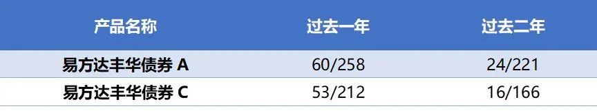 其中,易方达丰华债券型基金过去一年排名为同类前25%。
