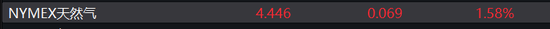 大宗商品则集体上涨,原油大幅上涨。截至发稿,COMEX黄金涨0.19%,ICE布油涨3.77%,NYMEX原油涨4.62%,INE原油涨5.59%,NYMEX天然气涨1.58%。