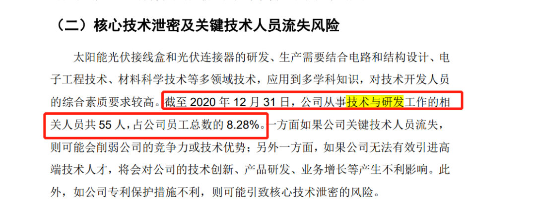 据快可电子申报材料显示,其截至2020年底,其从事技术和研发工作的相关人员共55人,仅占公司员工总数的8.28%。