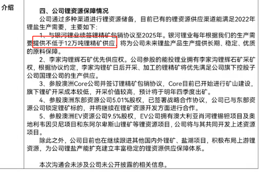 比较明确公布了年供应量的只有一家渠道——银河锂业,每年向雅化集团提供不低于12万吨的锂精矿供应,但未公布采买价格。