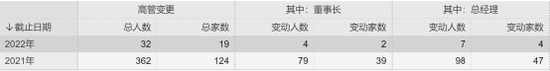 近年来公募基金行业高管人员变动比较频繁,Wind数据显示,今年以来公募基金高管变动总人数达到32人次,涉及19家基金公司;其中,董事长的变动人数有4人,总经理的变动人数有7人,副总经理的变动人数有10人。而在刚刚过去的2021年公募基金高管变动总人数达到362人次,涉及124家公司,其中,董事长、总经理两大公募核心岗位变动的分别为79人次、98人次。