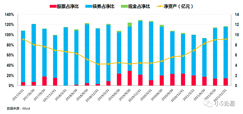 在实际的运作中我们可以看到,组合的股票仓位调整非常灵活:在大致以15%(历史平均仓位)作为中枢的基础上,最高接近30%,最低则可以低至空仓。而组合的债券仓位则平均保持在100%左右。