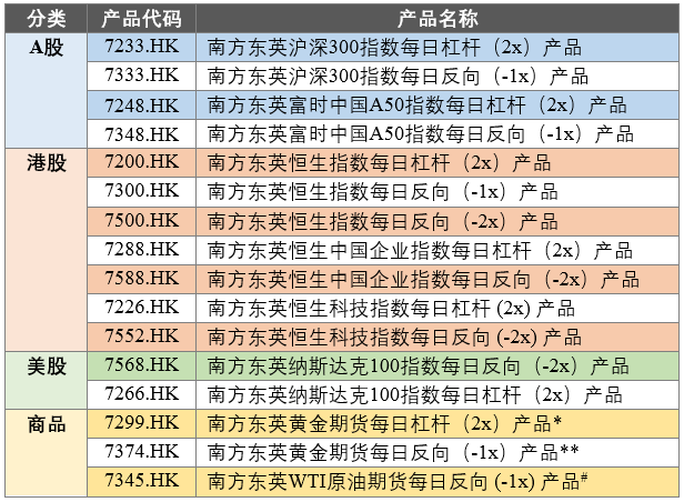 南方东英杠杆及反向产品