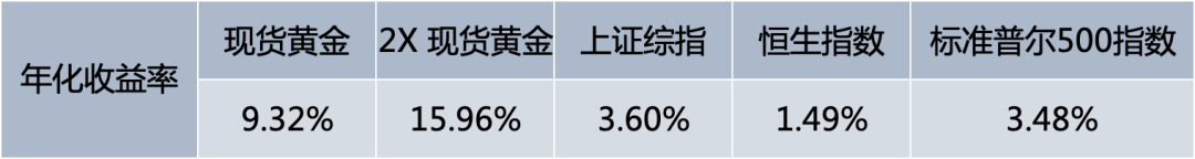 *此为现货黄金价格每日回报的模拟累积两倍的数据
