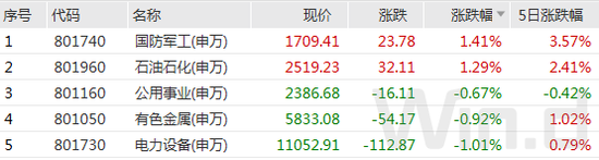 在市场整体下跌的同时,国防军工和石油化工板块却逆市上涨超1%,成为市场中仅存的亮点。
