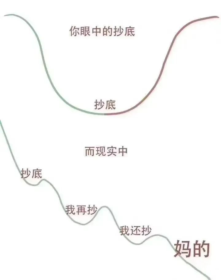 抄底,百度百科收录的定义是“以某种估值指标衡量股价跌到最低点,尤其是短时间内大幅下跌时买入,预期股价将会很快反弹的操作策略”,其暗含了一种博反弹和赚快钱的意思,以这样的心态去投资,一旦市场没有给予正反馈,比如继续大幅下跌,都很容易造成心态的失衡和恐慌的加剧,在这种情况下即便有钱还敢继续加仓吗?因为博反弹和赚快钱意愿的落空,往往你是不敢的。