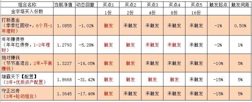 “年年赚(红)债券”组合受可转债回调影响下跌,目前触发了买点四,本周实施了买点三和买点四的首笔买入,尚剩余买点四的第二笔交易待执行。