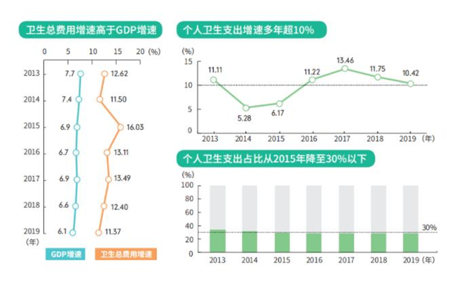 在2013年-2019年期间,卫生总费用增速一直高于GDP,显示整个行业的规模是在持续扩大,为企业提供了更为广阔的成长空间。