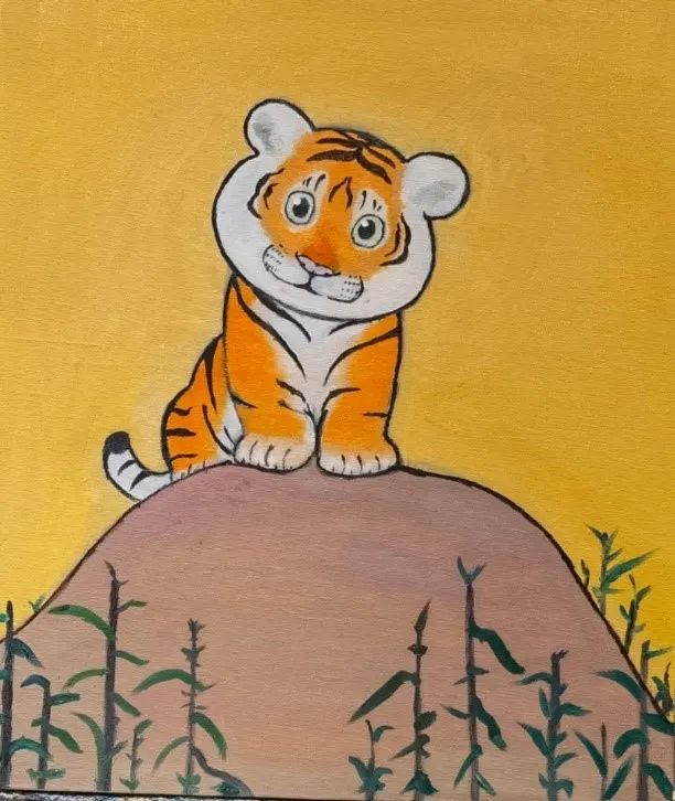 图:券商业务团队成员新春福字与油画展示
