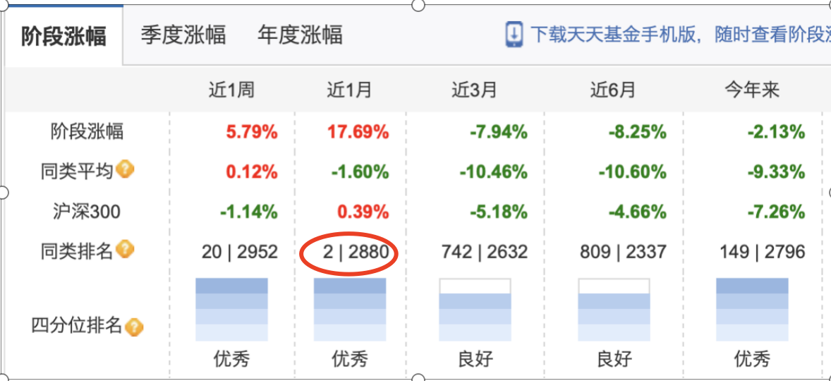 近期,锂矿板块个股走势强劲,也使得施成管理的产品业绩大幅上行。尽管今年以来,其产品还处于亏损状态,但近一周、近一个月都有很不错的表现,从排名看,近1月业绩排名同类产品第二。