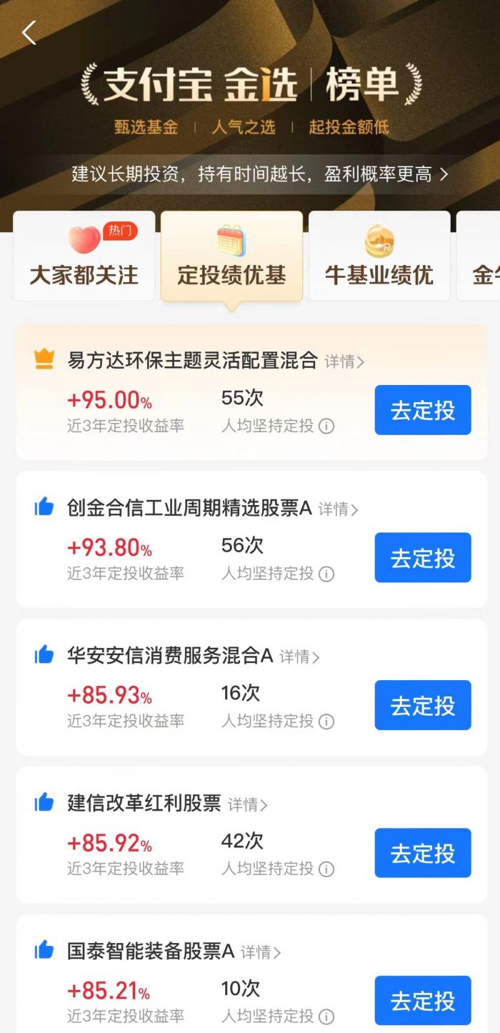3月1日,21世纪经济报道记者查看蚂蚁财富平台的金选榜单发现,除了取消销量类榜单,“定投绩优基”的收益率指标也从近1年拉长至近3年,并显示持有人定投的平均期数。此外,目前金选各榜单在展示上榜基金历史业绩的同时,进一步丰富了风险相关指标,如新增夏普比率展示,页面也配了相应的专业词条科普。