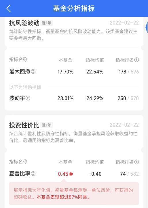 据介绍,蚂蚁财富陆续对基金详情页、购买页做过多轮升级优化,丰富了基金分析维度及风险提示,比如详细介绍基金投资参考指标:最大回撤、波动率、夏普比率、收益回撤比等,并搭配通俗易懂的注释,方便投资者全面了解这只基金。