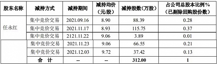 自2021年8月起,公司董事、副总经理任永红便开始了减持之路。通过多次减持持股比例由17.56%下降至16.56%,合计套现约2822.2万元。