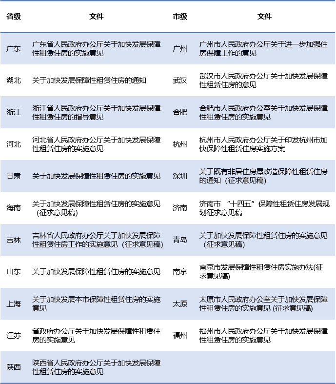 1、近期国家及各地有关保障性租赁住房的专项政策
