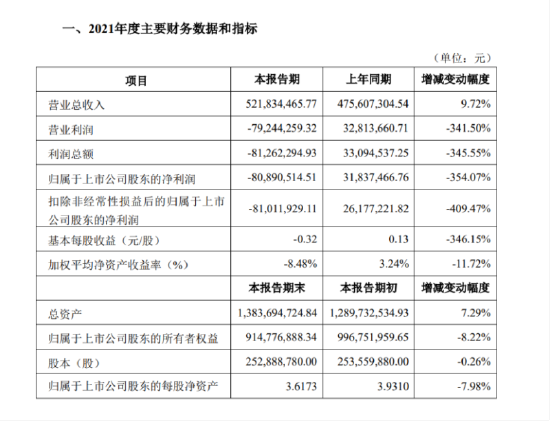热点栏目 蓝鲸教育3月1日讯,昨日,海伦钢琴发布2021年度业绩快报,报告期公司实现营业总收入5.21亿元,较上年同期增长9.72%,净亏损达8089.05万元。净利润较上年同期下降354.07%,同比盈转亏。