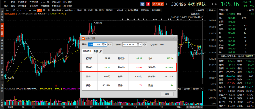 中科创达2015年12月10日上市,开盘价7.17元,2021年7月8日创下历史新高的167.98元,股价累计最大涨幅达到惊人的22倍。公司股价今日最低触及104.15元,相比历史最高价累计最大跌幅接近38%。