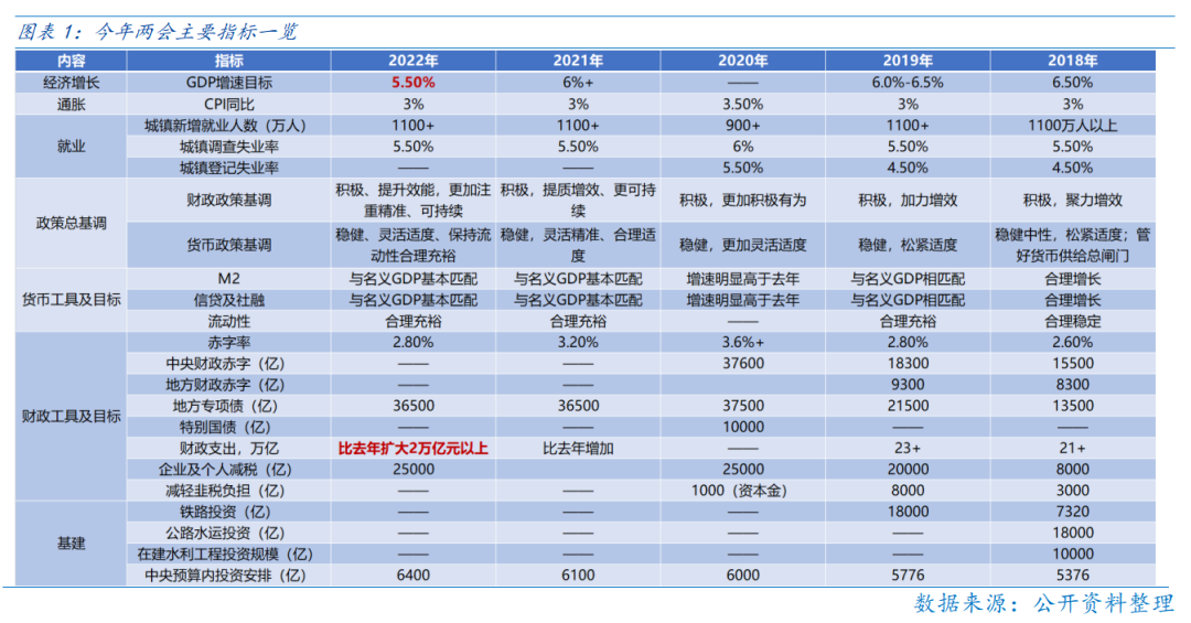 2022年政府工作报告确认2022年GDP增速目标为5.5%左右,高于此前的市场预期中枢。随着较高的GDP增速目标明确,未来“稳增长”或从政策意志转变为实际增速,市场会对二季度及以来的宏观经济应更有信心。映射到投资上,宏观经济增速好于预期,即盈利端对市场的支撑加强,对中期的A股可以更为乐观。