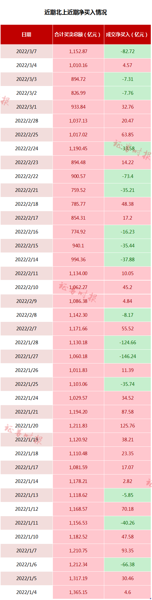 当日北向资金也大幅净卖出。数据显示,3月7日,北向资金净卖出82.72亿元,为最近一个多月来的最大净卖出额。