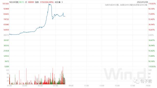 在LME镍涨破10万美元后,涨幅回落至66%。后来,伦敦金属交易(LME)所直接暂停了LME镍交易的交易。