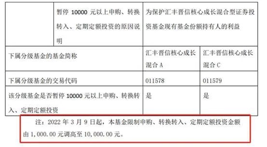 该基金是去年9月10日起开放赎回和转换转出的,但未同期恢复申购、转换转入及定期定额投资业务,直至今年2月7日。当时恢复后的申购限制为1万元。而今也同步放宽到5万元。