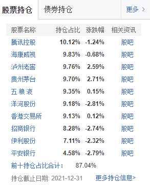 其去年末的重仓股也主要“落子”在互联网、安防设备股、白酒股、非银金融、饮料股、银行股等领域的龙头个股上。