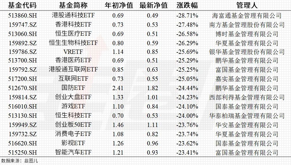 所以,今天呢,我就给大家打打气,盘点一下年初至今,那些净值灰飞烟灭的ETF基金。