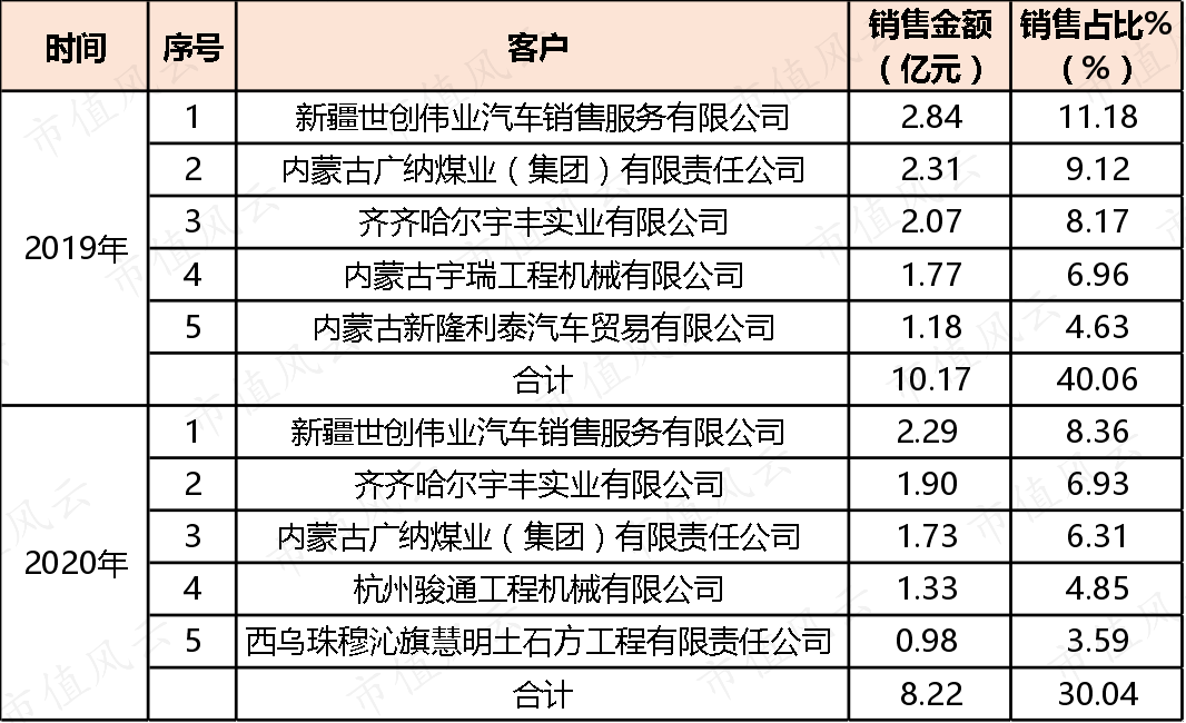 从2019年-2020年的前五大客户情况看,除了广纳煤业和慧明土石方工程公司,其他客户均为经销商,且大多位于内蒙古、新疆等东北和西北地区,即矿产资源最丰富的地方。