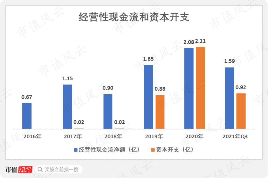 公司的资本开支不高,仅在2020年出现2.11亿元的开支,主要是建设新制造基地和子公司天津同力的二期项目。