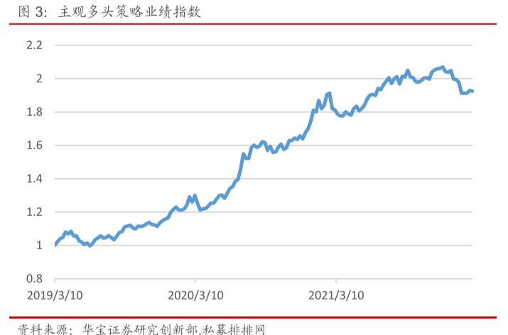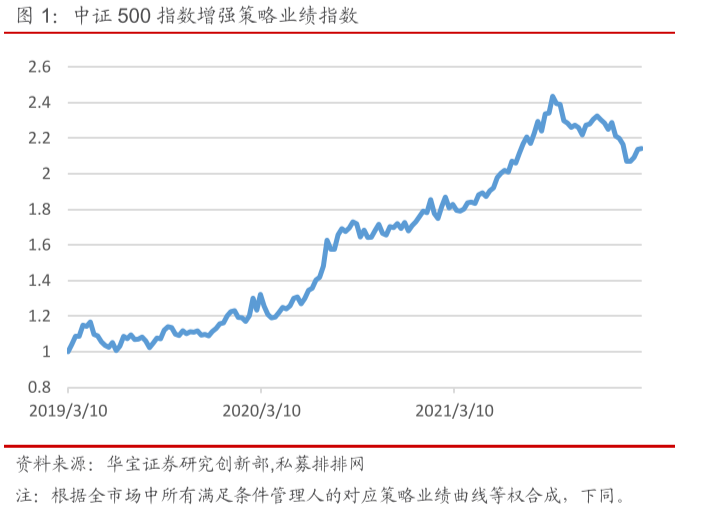 我们在全市场中筛选,以私募基金管理人为统计维度,将其发行的属于该策略类别的产品等权合成为该管理人对应策略的业绩曲线,首先以列表的形式统计过去一年该策略收益率排名前十的管理人(不足10家则全部展示),再将全市场中所有满足条件管理人的对应策略业绩曲线等权合成为该策略代表全市场的业绩指数。