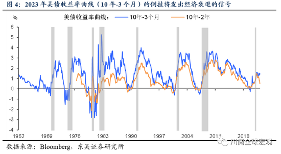 更值得关注的10年-3个月曲线,其自1970年以来的倒挂均预见了经济的衰退,由于其当前仍高达160bp,因此美联储至少要加息150bp以上才可能出现倒挂,这也意味着在加息6次之后,美国经济衰退的风险将显著加大。
