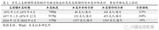 上述情景的演绎对资产配置有什么启示呢?我们认为主要的确定性是黄金。从历史来看,当美联储为跟上通胀形势持续加息直至经济走向衰退时,黄金均有良好表现。比如在20世纪70年代,美联储两次被迫应对通胀而加息直至经济陷入衰退,黄金的涨幅分别高达113%和244%,而在2017年前后美联储同时加息和缩表时,黄金也上涨了15%。因此,尽管我们在今年就旗帜鲜明地看好黄金,在即将到来的这一轮美联储加息进程中,我们预期金价将继续上涨,在未来12个月内升至2300美元/盎司。