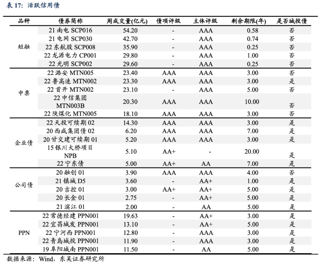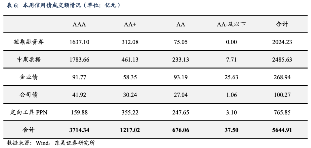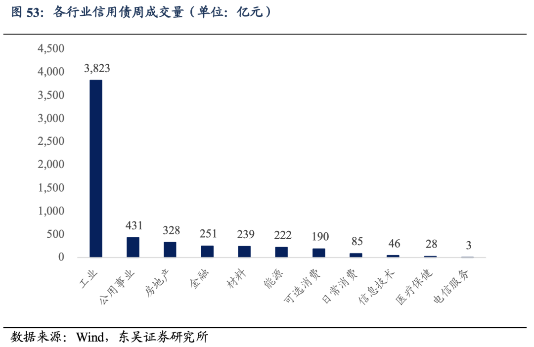 本周工业行业债券周交易量最大,达3,823亿元,其次分别为公用事业、房地产、金融、材料及能源行业。