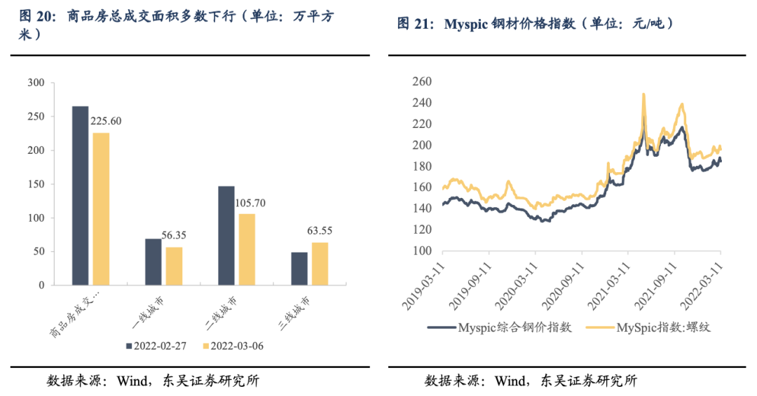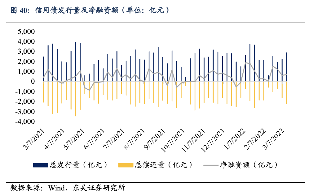 A:2022年2月的信贷规模总共1.23万亿元,同比少增1258亿元,且中长期贷款增量占新增人民币贷款的比例大幅回落。分部门来看,贷款规模主要由企业部门贡献:(1)居民部门短期和中长期贷款均较弱,分别比2021年同期少增220亿元和4572亿元。居民贷款的规模和结构与住房的销售情况密切相关,2022年2月30大中城市商品房成交面积为671万平方米,在过去五年(2017-2021年)间,仅高于受疫情影响的2020年,虽然近期有房地产放松的政策,但购房者的信心恢复仍需时日。(2)企业中长贷较2021年同期少增5948亿元,企业短贷较2021年同期多增1641亿元。企业中长贷在2022年1月出现同比多增后,再次落入同比少增区间,该点可能与春节期间各项目的停滞有关,也在一定程度上表明了企业对未来经营状况的预期仍然难言乐观。近期大宗商品价格有所上涨,PPI下行斜率放缓,成本端压力仍然存在。