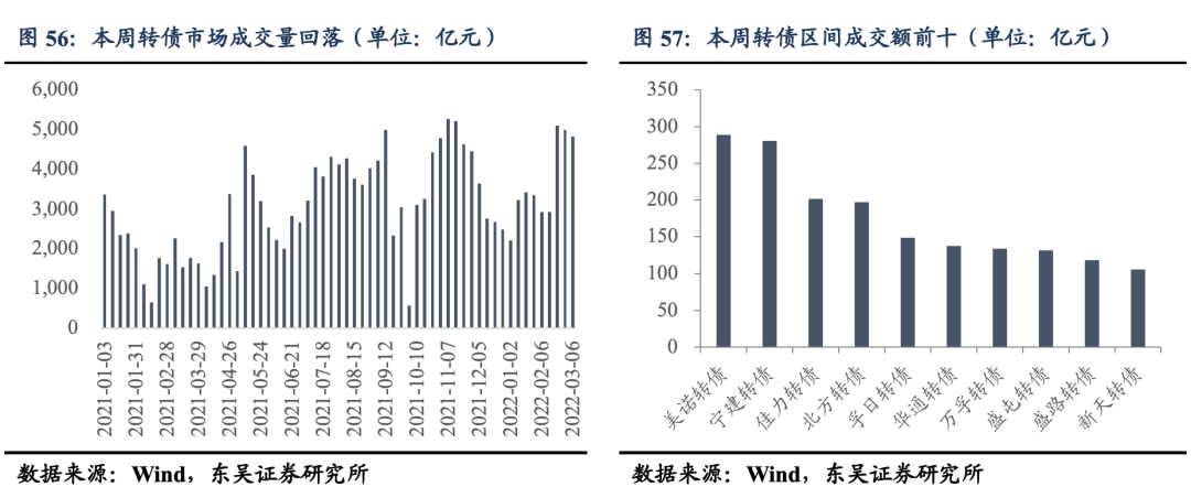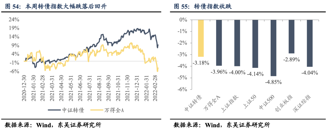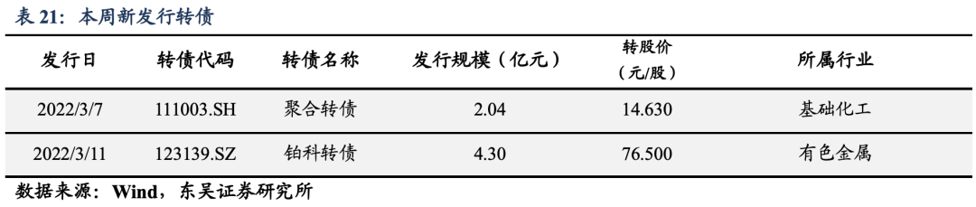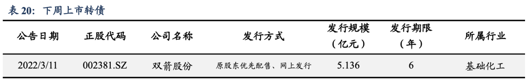 转债市场策略:近期转债市场大幅调整,受俄乌战争局势影响,大宗商品、美债利率和美股的表现呈现阶段性特点,滞胀预期抬升导致股债双杀。随着两会临近,预计稳增长政策主线下的东数西算、人工智能、特高压等新基建领域相关标的将会迎来高增长,成长角度关注新能源汽车、绿电、半导体高景气行业标的,同时注意周期性板块的上涨机会。具体来看:1.稳增长政策利好条件下,预期高增长的新基建板块,如亨通转债、起帆转债、白电转债、润建转债、奥飞转债、九洲转2等;2.符合市场逻辑,近期景气度上扬的新能源汽车、半导体等板块需要关注,如闻泰转债、天合转债、晶科转债等;3.近期疫情反复,医药题材转债迎来上涨机会,重点关注快速检测和医物治疗方向,如万孚转债、美诺转债、塞力转债、乐普转2、昌红转债、科华转债等;4.注意周期性板块的上涨机会,如猪肉板块的金农转债、傲农转债等;5.注意复苏类题材的上涨机会,如旅游板块的众信转债、航空板块的南航转债等。
