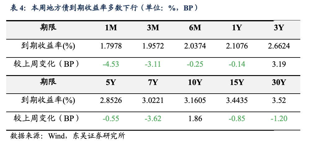 本周地方债存量31.56万亿元,成交量1276.51亿元,换手率为0.53%。前三大交易活跃地方债省份分别为山东省、浙江省和河南省,前三大交易活跃地方债期限分别为10Y、5Y和7Y。