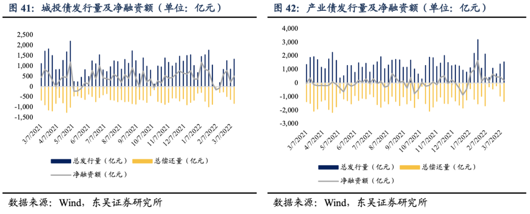 具体来看,本周城投债发行1325.61亿元,偿还822.49亿元,净融资额503.12亿元;产业债发行1570.51亿元,偿还1374.66亿元,净融资额195.85亿元。