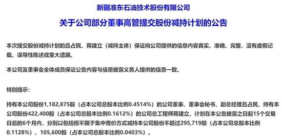 就在3月5日,准油股份披露高管减持计划。公司董事、董事会秘书、副总经理吕占民拟减持不超过29.57万股股票,总工程师蒋建立拟减持不超过10.56万股股票。减持期限为公告日起 15 个交易日后的 6 个月内,减持原因均为“个人资金需求”。