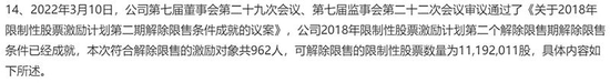 国电南瑞3月11日公告显示:公司董事会通过决议,2018年限制性股票激励计划第二个解除限售期解除限售条件已经成就,本次符合解除限售的激励对象共962人,可解除限售的限制性股票数量为11192011股。