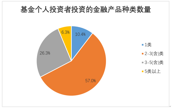 据中国证券投资基金业协会《基金个人投资者投资情况调查问卷(2018年度)》数据所示,基金个人投资者在一定程度上做到了金融资产多样化配置,近九成投资者投资2类及以上金融产品,其中26.3%投资者投资3-5类金融产品,6.3%的投资者投资5类以上金融产品。