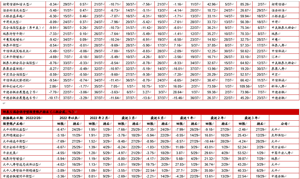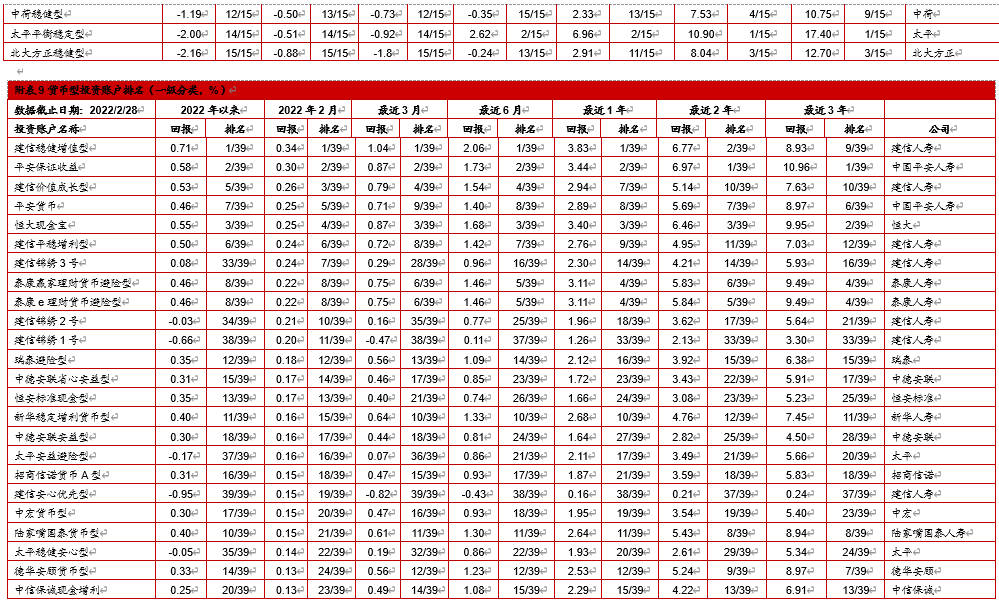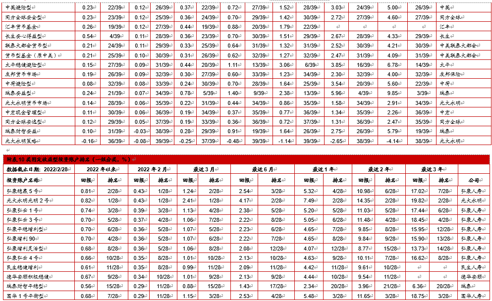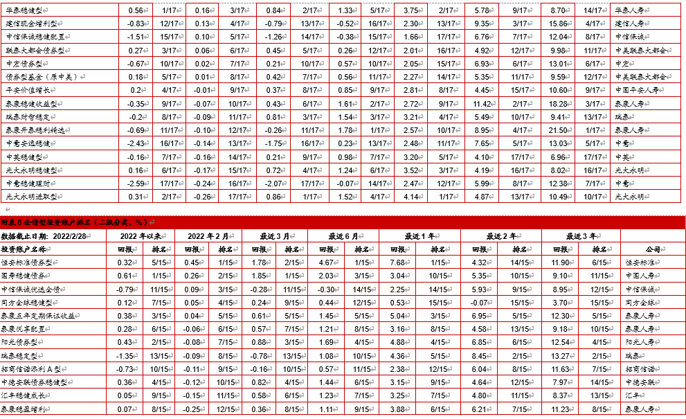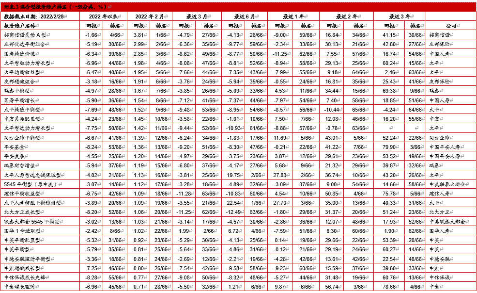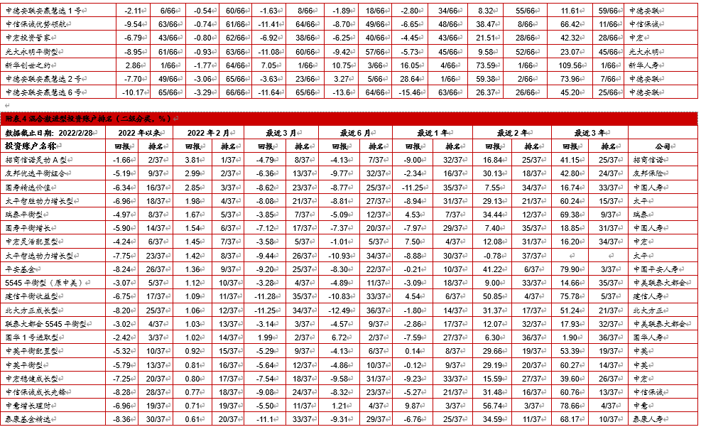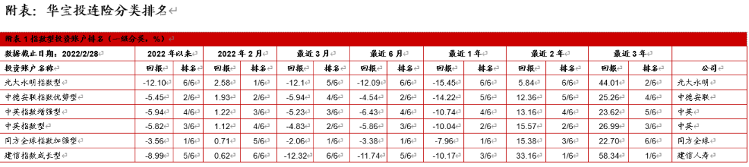 4. 中国投连险2022年2月分类排名