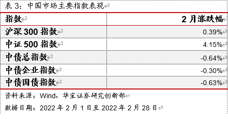 2022年2月中国市场主要指数表现如下表: