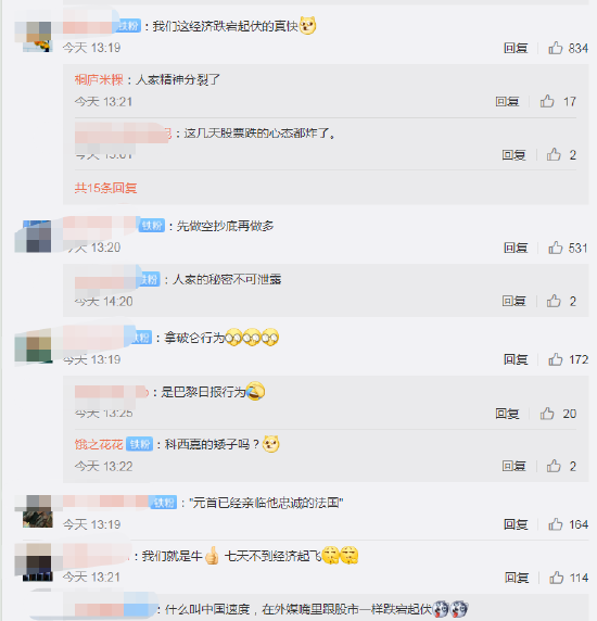 在社交平台,网友纷纷表示,“人家精神分裂了”,“一直不要脸。。。从未变过”,“什么叫中国速度,在外媒嘴里跟股市一样跌宕起伏”,“先做空,再低位重仓抄底,再做多”,“都是杀散户的套路”,“这不是不要脸,人家操纵市场情绪吸血筹,不寒碜”