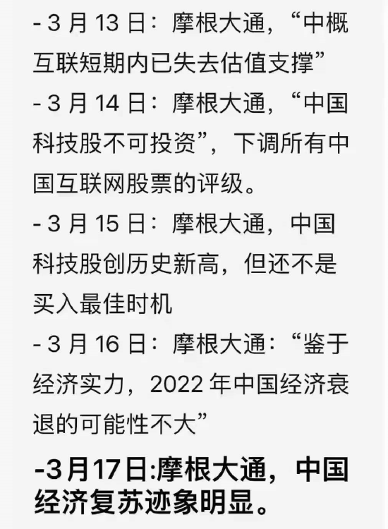 热点栏目 随着中概股和恒生科技股的暴涨暴跌,摩根大通对中国科技股的观点的截图刷屏网络,一会极度唱衰,一会又说超配A股和港股,到底发生了什么情况?