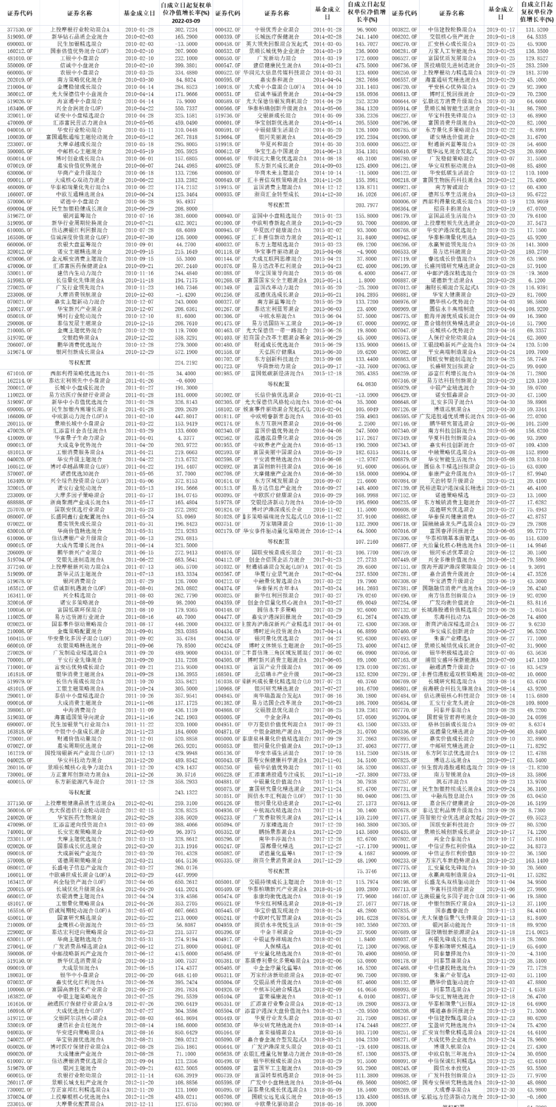从东方财富Choice数据库中,选择基金数据浏览器,选取偏股混合型基金分类,拉出基金成立日期,提取自基金成立以来至2022年3月9日的总回报率。以自然年为单位,清点成立的新偏股型基金数量,计算等权平均配置至今的总收益率。年内等权配置的新基金年化收益率为模糊数值,但不影响认知。2022年3月9日,换算2022年度过了0.2年。