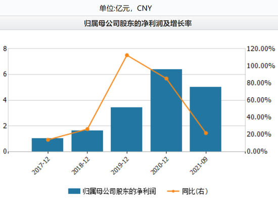 2018年至2020年及2021年前三季度,公司营收分别达到88.2亿元、103亿元、136亿元、63.5亿元;归母净利润分别为1.62亿元、3.45亿元、6.4亿元、5.03亿元。在此之前的五年内,公司归母净利润跌跌不休,从2.6亿元降到1亿元。