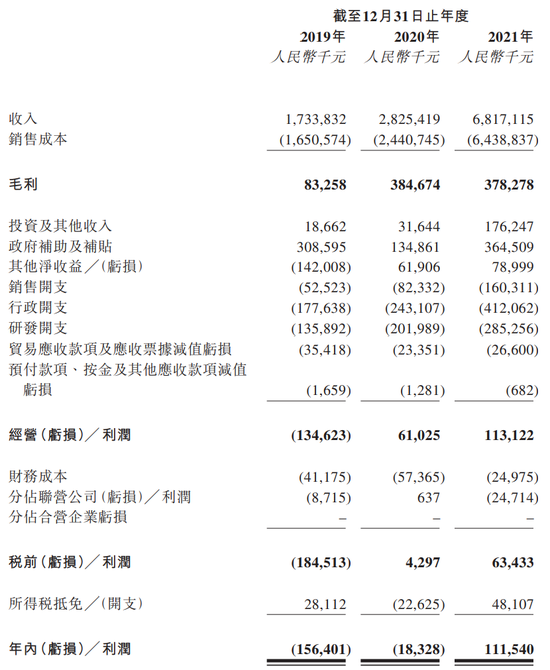 财务数据方面,2019年-2021年(下称“报告期”),中创新航实现的营业收入分别为17.34亿元、28.25亿元、68.17亿元,净利润分别为-1.56亿元、-0.18亿元、1.12亿元。